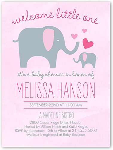 Elephant Baby Girl Shower Invitations